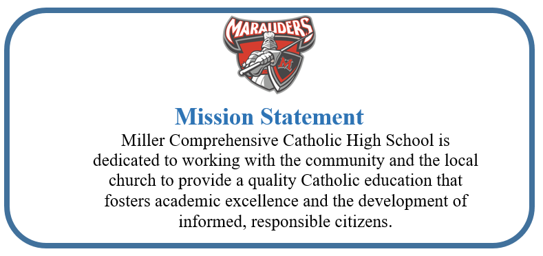 Together, we will embrace the spirit of faith, knowledge, and community that defines the proud and rich tradition of Miller Comprehensive Catholic High School. With a shared commitment to excellence, compassion, and growth, we will create a vibrant learning environment where students can and will flourish.